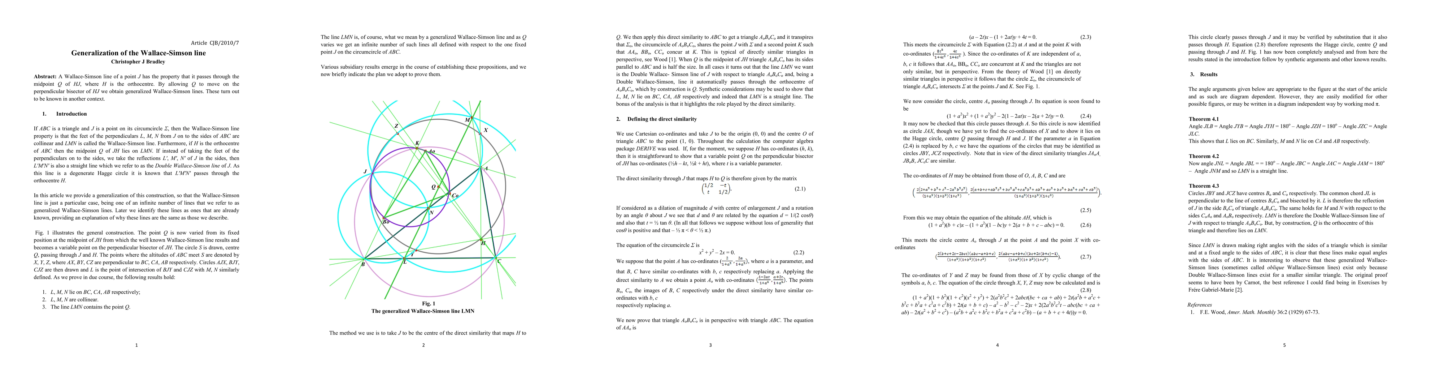 The research introduces a new method for proving the existence and properties of generalized Wallace-Simon lines using direct similarity.