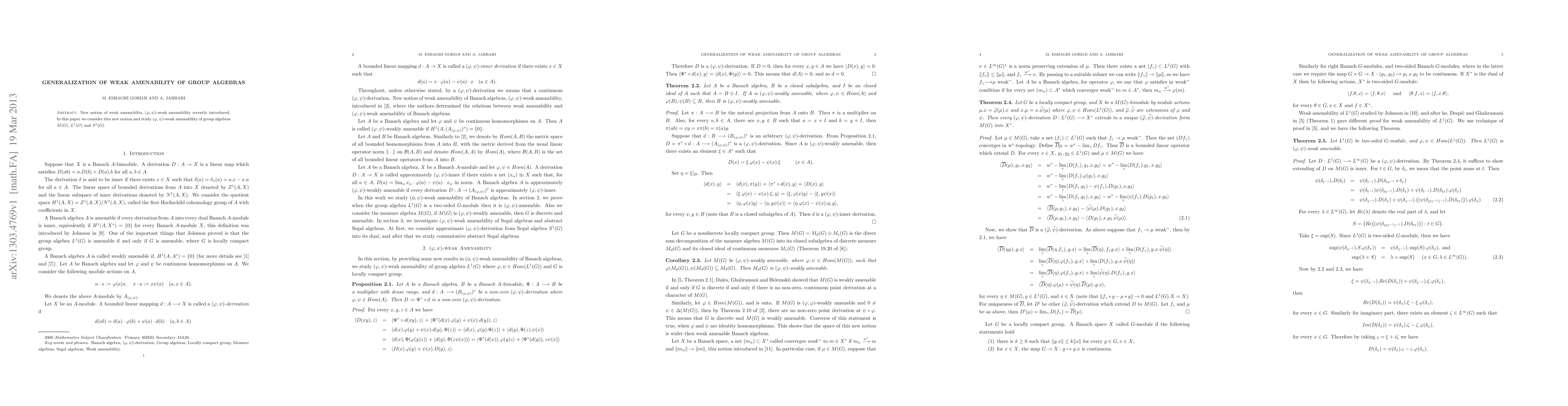New notion of weak amenability, $(\varphi,\psi)$-weak amenability recently introduced. In this paper we consider this new notion and study $(\varphi,\psi)$-weak amenability of group algebras $M(G)$, $L^1(G)$ and $S^1(G)$.