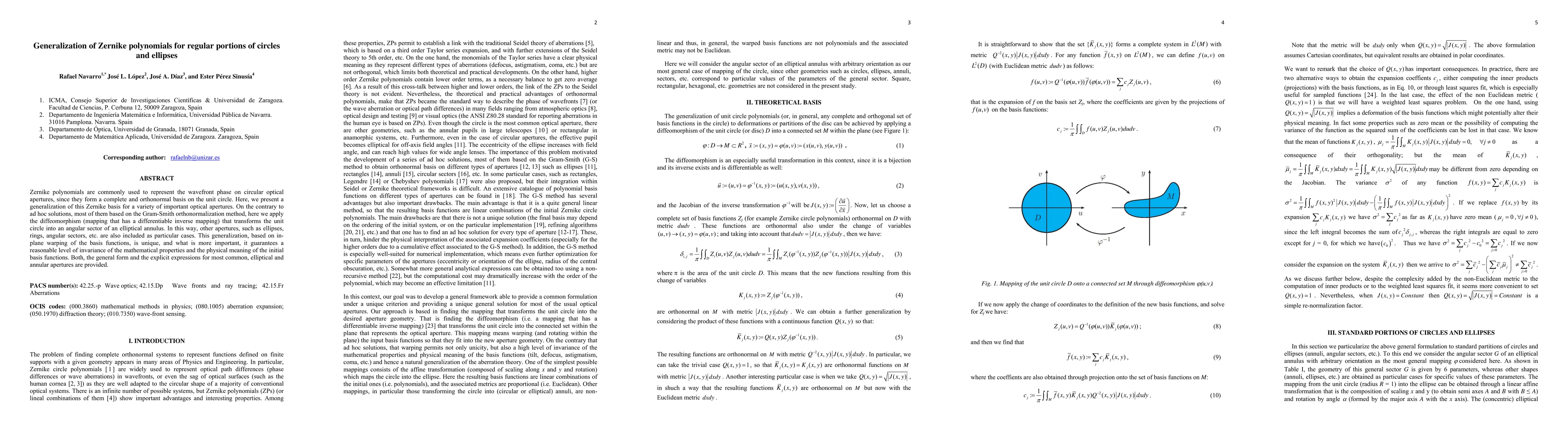 Zernike polynomials are commonly used to represent the wavefront phase on circular optical apertures, since they form a complete and orthonormal basis on the unit circle. Here, we present a generalization of this Zernike basis for a variety of important optical apertures. On the contrary to ad hoc solutions, most of them based on the Gram-Smith orthonormalization method, here we apply the diffeomorphism (mapping that has a differentiable inverse mapping) that transforms the unit circle into an angular sector of an elliptical annulus. In this way, other apertures, such as ellipses, rings, angular sectors, etc. are also included as particular cases. This generalization, based on in-plane warping of the basis functions, provides a unique solution, and what is more important, it guarantees a reasonable level of invariance of the mathematical properties and the physical meaning of the initial basis functions. Both, the general form and the explicit expressions for most common, elliptical and annular apertures are provided.