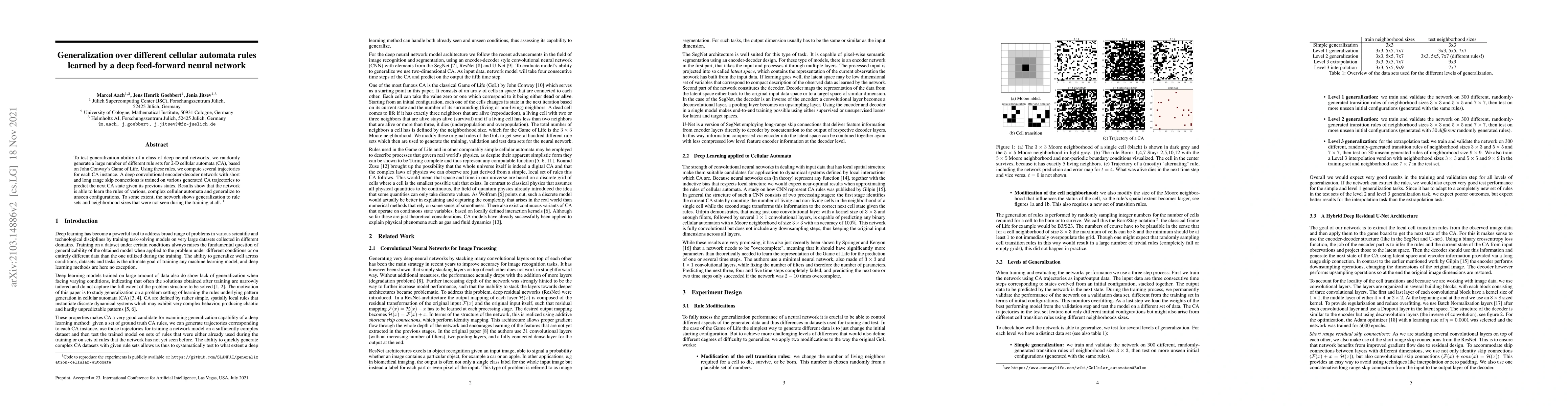 This paper investigates the generalization ability of deep neural networks by training a convolutional encoder-decoder model on randomly generated 2-D cellular automata rules. The network successfully learns and predicts the rules of various unseen cellular automata configurations, demonstrating notable generalization to new rules and neighborhood sizes.