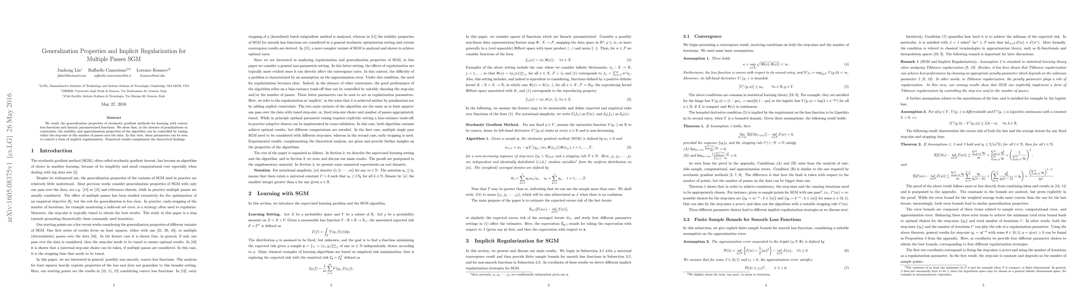 This paper investigates the generalization properties of stochastic gradient methods for convex loss functions, demonstrating that stability and approximation can be managed by adjusting step-size or the number of data passes, which acts as implicit regularization. Theoretical insights are corroborated by numerical results.