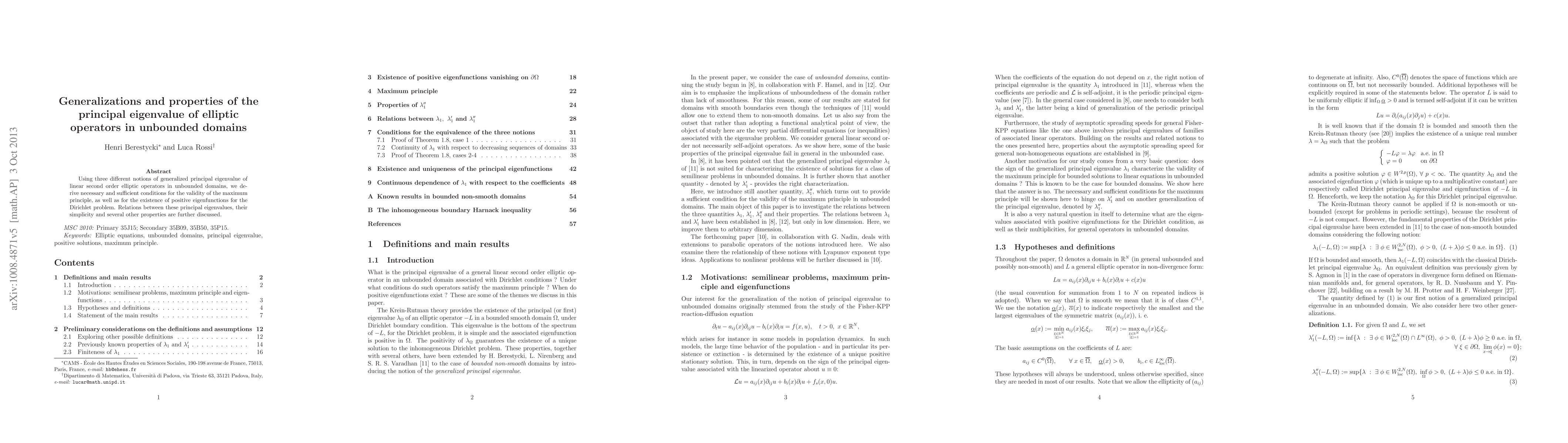 This paper explores three definitions of the principal eigenvalue for elliptic operators in unbounded domains, establishing conditions for the maximum principle and the existence of positive eigenfunctions. It also investigates the relationships, simplicity, and additional properties of these principal eigenvalues.