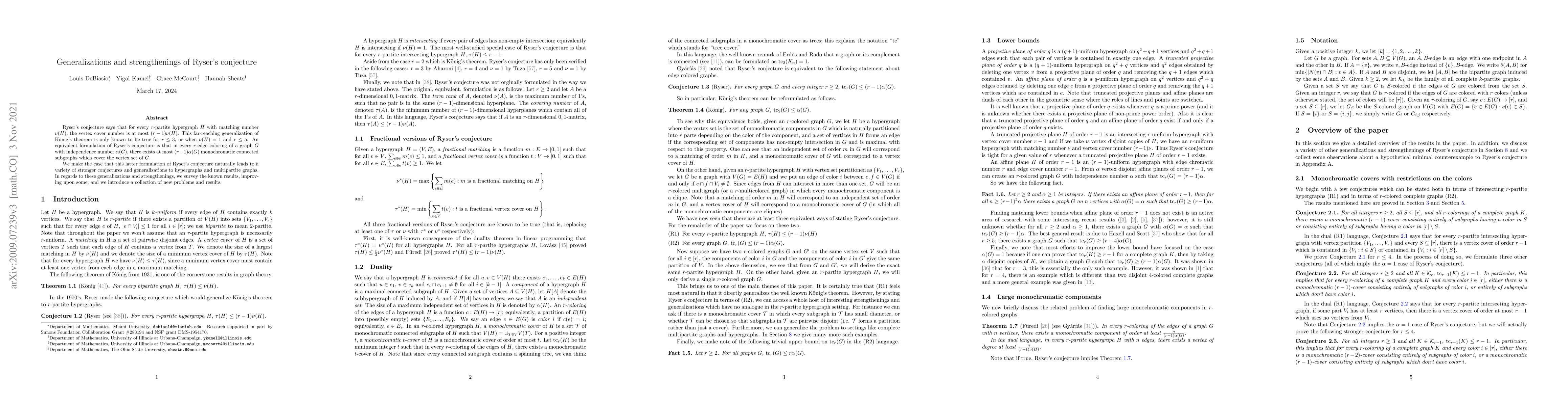 Ryser's conjecture says that for every $r$-partite hypergraph $H$ with matching number $\nu(H)$, the vertex cover number is at most $(r-1)\nu(H)$. This far reaching generalization of K\"onig's theorem is only known to be true for $r\leq 3$, or $\nu(G)=1$ and $r\leq 5$. An equivalent formulation of Ryser's conjecture is that in every $r$-edge coloring of a graph $G$ with independence number $\alpha(G)$, there exists at most $(r-1)\alpha(G)$ monochromatic connected subgraphs which cover the vertex set of $G$. We make the case that this latter formulation of Ryser's conjecture naturally leads to a variety of stronger conjectures and generalizations to hypergraphs and multipartite graphs. Regarding these generalizations and strengthenings, we survey the known results, improving upon some, and we introduce a collection of new problems and results.