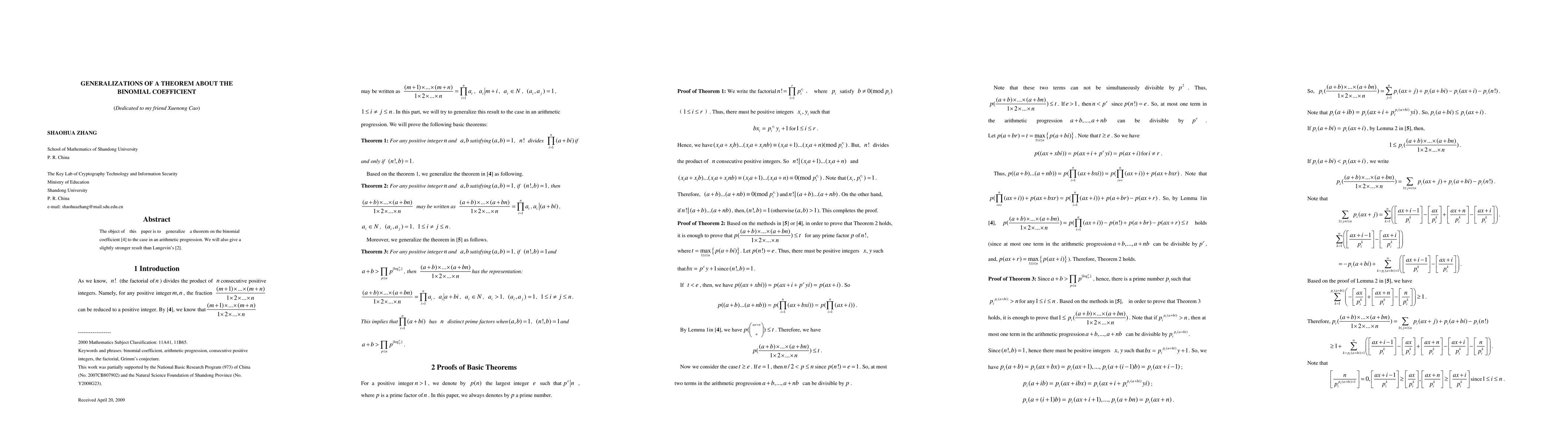 The object of this paper is to generalize a theorem on the binomial coefficient [4] to the case in an arithmetic progression. We will also give a slightly stronger result than Langevin's [2].
