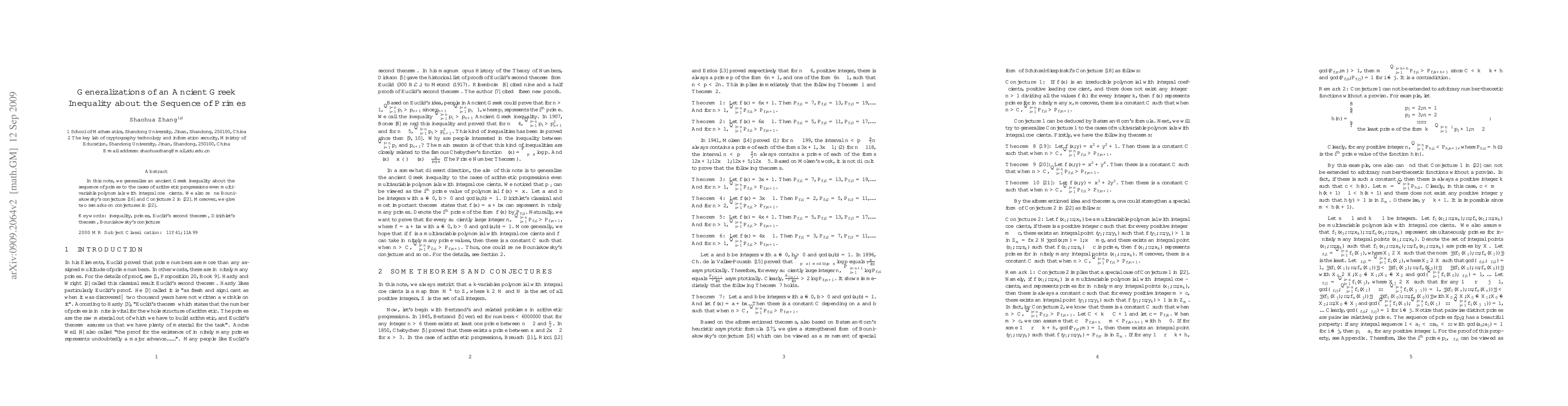 In this note, we generalize an ancient Greek inequality about the sequence of primes to the cases of arithmetic progressions even multivariable polynomials with integral coefficients. We also refine Bouniakowsky's conjecture [16] and Conjecture 2 in [22]. Moreover, we give two remarks on conjectures in [22]