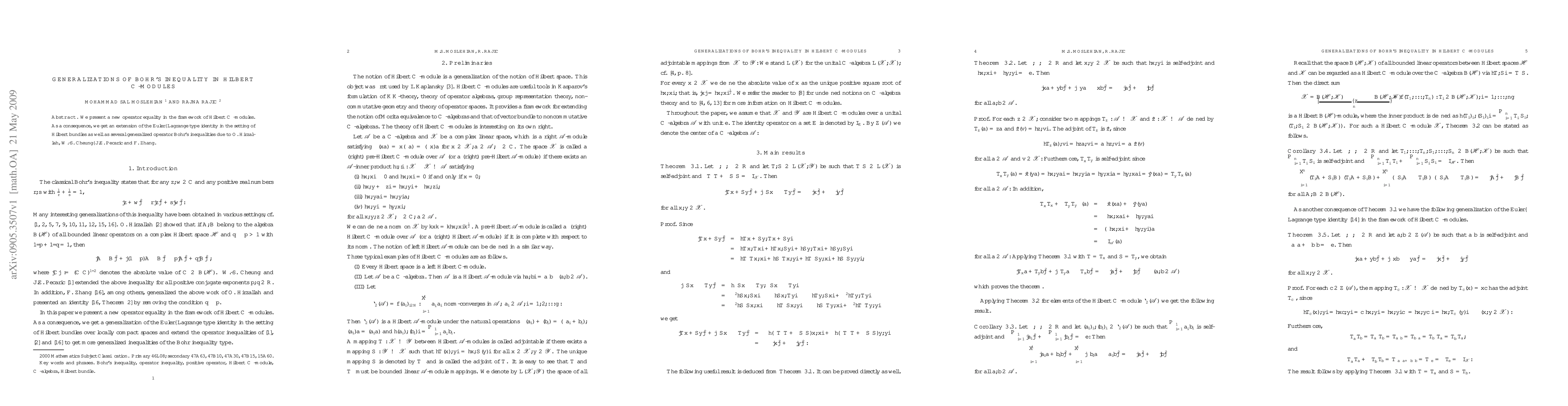 We present a new operator equality in the framework of Hilbert $C^*$-modules. As a consequence, we get an extension of the Euler--Lagrange type identity in the setting of Hilbert bundles as well as several generalized operator Bohr's inequalities due to O. Hirzallah, W.-S. Cheung-J.E. Pecaric and F. Zhang.