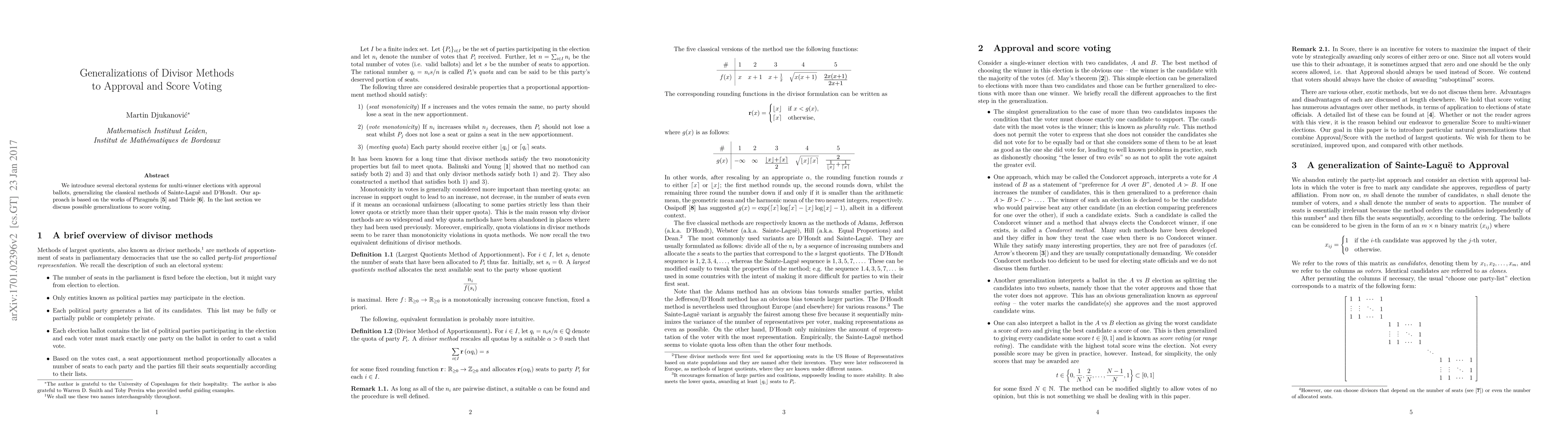 This paper generalizes the Sainte-Laguë and D'Hondt divisor methods to approval voting systems, drawing on Phragmén and Thiele's work, and explores potential extensions to score voting systems.