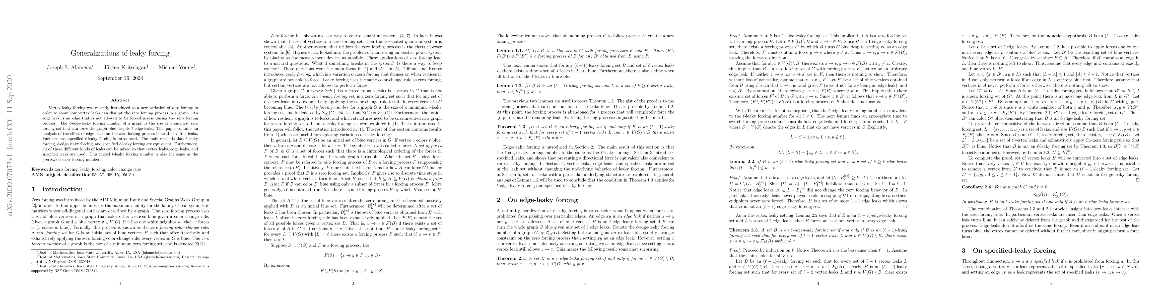 Vertex leaky forcing was recently introduced as a new variation of zero forcing in order to show how vertex leaks can disrupt the zero forcing process in a graph. An edge leak is an edge that is not allowed to be forced across during the zero forcing process. The $\ell$-edge-leaky forcing number of a graph is the size of a smallest zero forcing set that can force the graph blue despite $\ell$ edge leaks. This paper contains an analysis of the effect of edge leaks on the zero forcing process instead of vertex leaks. Furthermore, specified $\ell$-leaky forcing is introduced. The main result is that $\ell$-leaky forcing, $\ell$-edge-leaky forcing, and specified $\ell$-leaky forcing are equivalent. Furthermore, all of these different kinds of leaks can be mixed so that vertex leaks, edge leaks, and specified leaks are used. This mixed $\ell$-leaky forcing number is also the same as the (vertex) $\ell$-leaky forcing number.