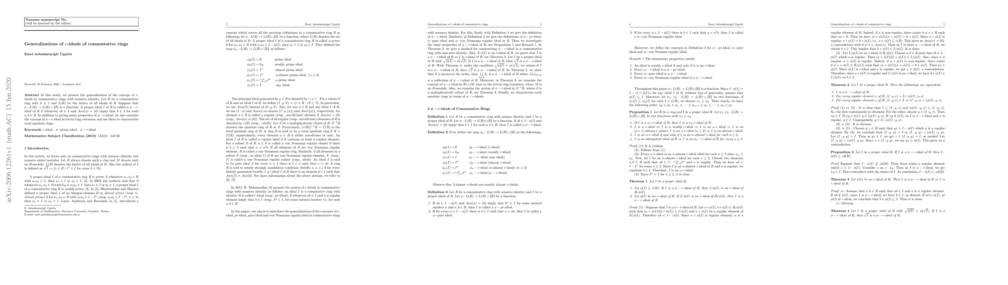 In this study, we present the generalization of the concept of $r$-ideals in commutative rings with nonzero identity. Let $R$ be a commutative ring with $0\neq1$ and $L(R)$ be the lattice of all ideals of $R$. Suppose that $\phi:L(R)\rightarrow L(R)\cup\left\{\emptyset\right\}$ is a function. A proper ideal $I$ of $R$ is called a $\phi-r$-ideal of $R$ if whenever $ab\in I$ and $Ann(a)=(0)$ imply that $b\in I$ for each $a,b\in R.$ In addition to giving many properties of $\phi-r$-ideal, we also examine the concept of $\phi-r$-ideal in trivial ring extension and use them to characterize total quotient rings.