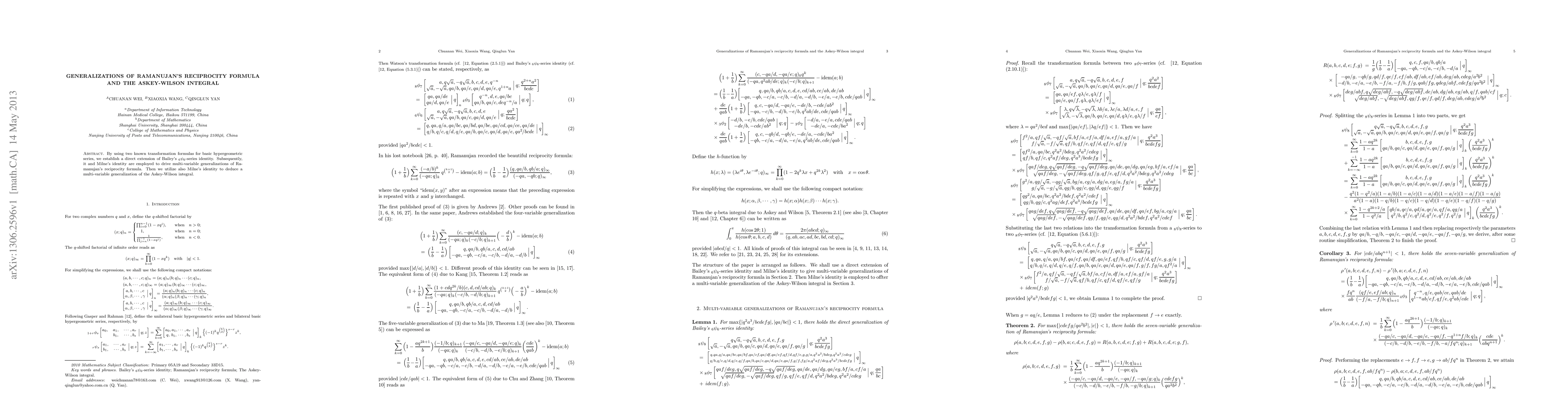 This paper extends Bailey's $_6\psi_6$-series identity and employs it to generalize Ramanujan's reciprocity formula and the Askey-Wilson integral into multi-variable forms. The generalizations are achieved using transformation formulas for basic hypergeometric series and Milne's identity.