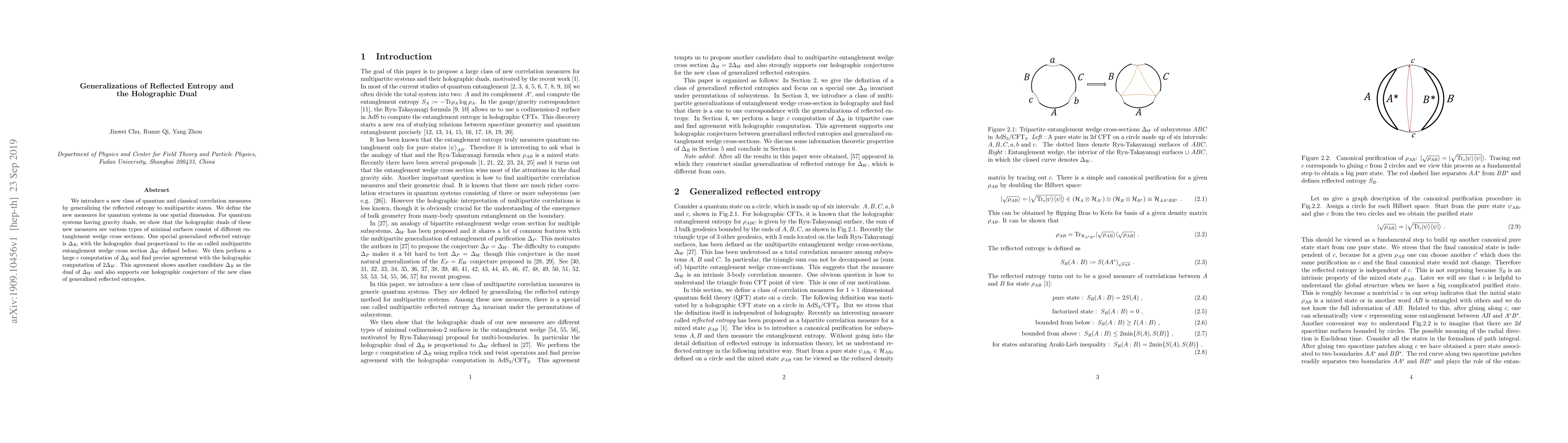 We introduce a new class of quantum and classical correlation measures by generalizing the reflected entropy to multipartite states. We define the new measures for quantum systems in one spatial dimension. For quantum systems having gravity duals, we show that the holographic duals of these new measures are various types of minimal surfaces consist of different entanglement wedge cross sections. One special generalized reflected entropy is $\Delta_R$, with the holographic dual proportional to the so called multipartite entanglement wedge cross section $\Delta_W$ defined before. We then perform a large $c$ computation of $\Delta_R$ and find precise agreement with the holographic computation of 2$\Delta_{W}$. This agreement shows another candidate $\Delta_R$ as the dual of $\Delta_W$ and also supports our holographic conjecture of the new class of generalized reflected entropies.