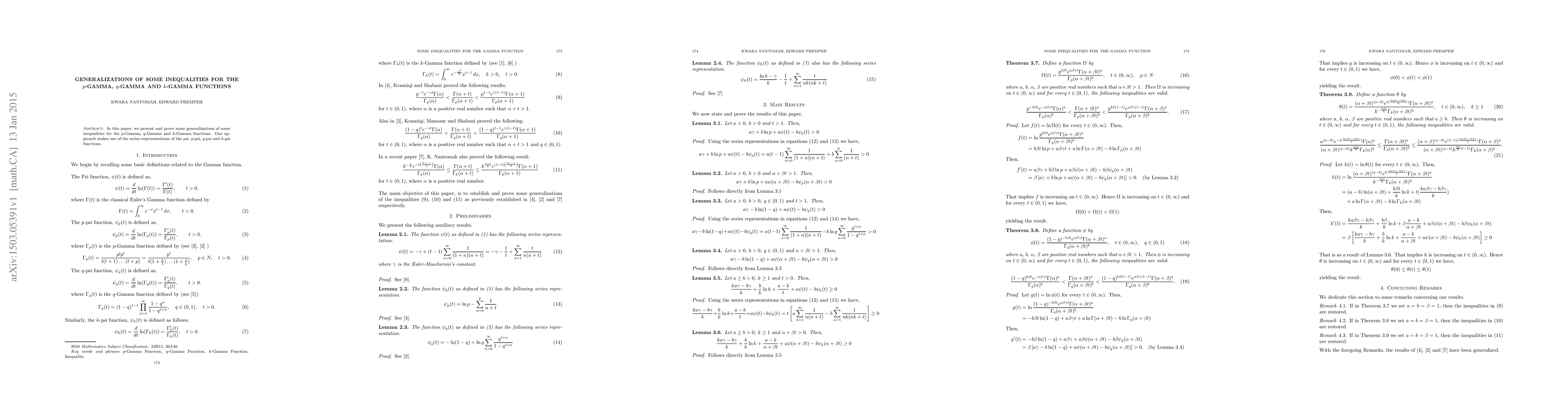 This paper generalizes inequalities for $p$-Gamma, $q$-Gamma, and $k$-Gamma functions using series representations of associated psi functions. The proofs are derived through advanced mathematical techniques involving these series representations.