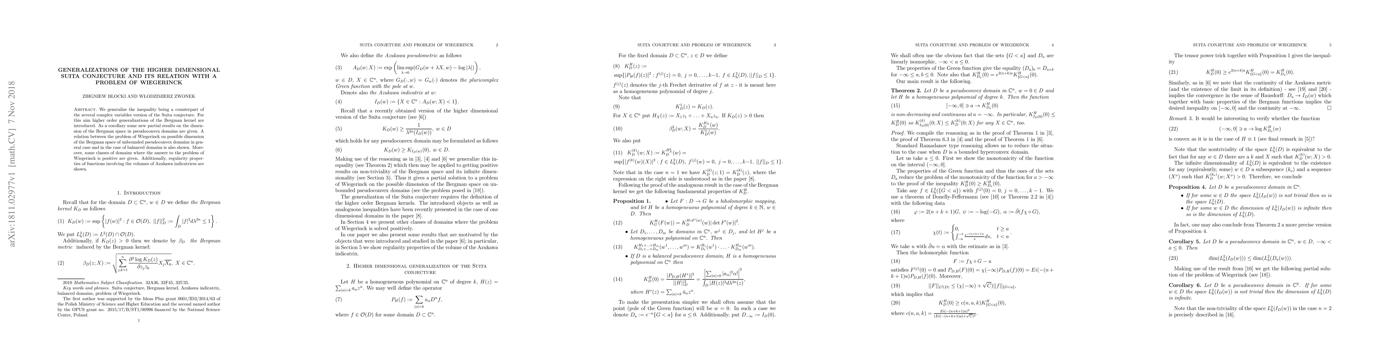 We generalize the inequality being a counterpart of the several complex variables version of the Suita conjecture. For this aim higher order generalizations of the Bergman kernel are introduced. As a corollary some new partial results on the dimension of the Bergman space in pseudoconvex domains are given. A relation between the problem of Wiegerinck on possible dimension of the Bergman space of unbounded pseudoconvex domains in general case and in the case of balanced domains is also shown. Moreover, some classes of domains where the answer to the problem of Wiegerinck is positive are given. Additionally, regularity properties of functions involving the volumes of Azukawa indicatrices are shown.