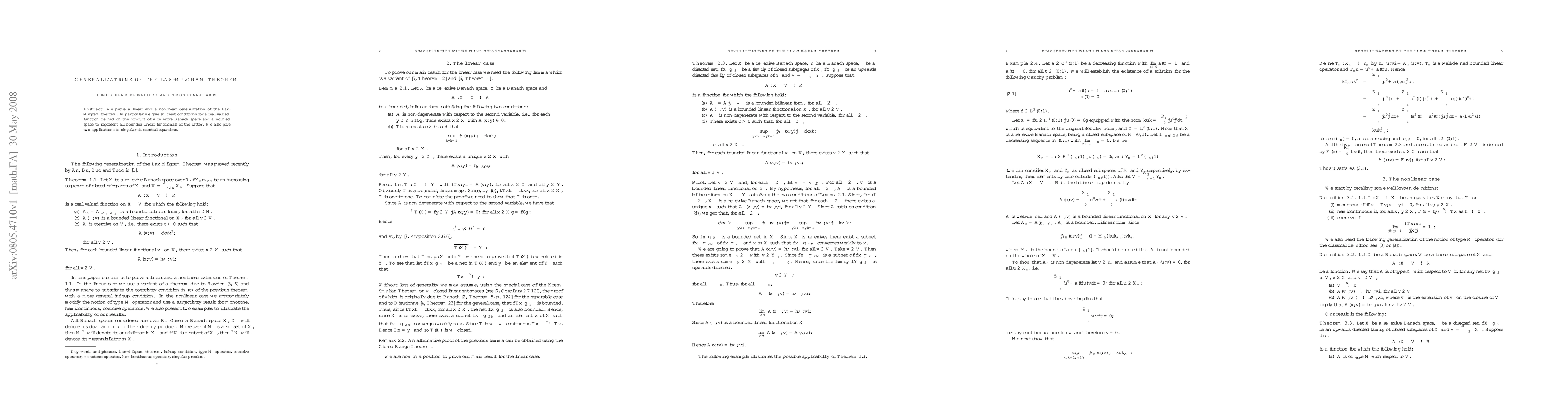 The paper generalizes the Lax-Milgram theorem to provide sufficient conditions for a real-valued function on a product of Banach spaces to represent bounded linear functionals.