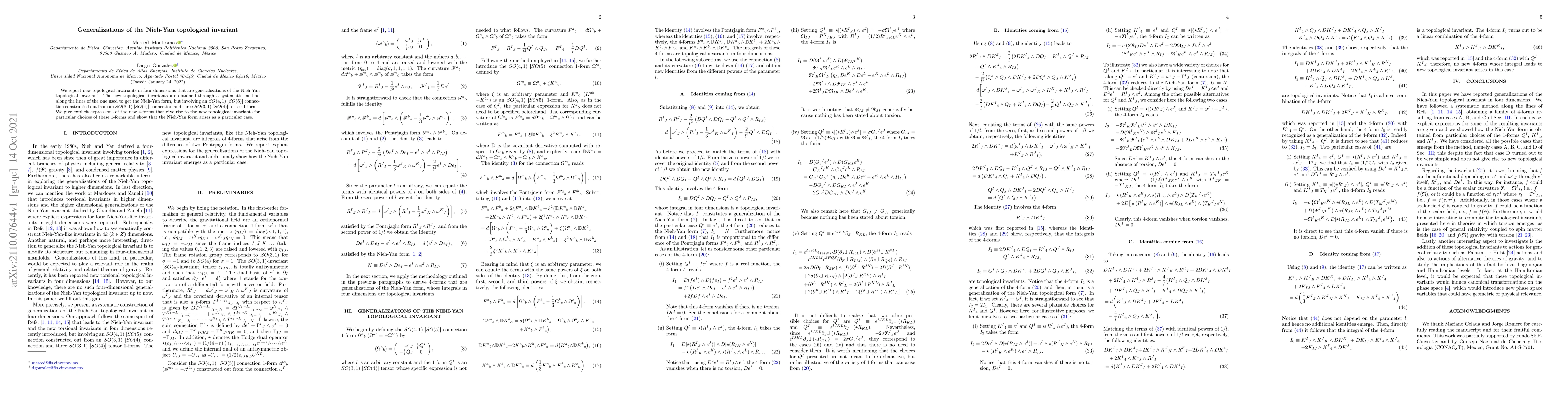 Researchers introduce new topological invariants in four dimensions that generalize the Nieh-Yan invariant, using a systematic method involving $SO(4,1)$ connections and tensor 1-forms.