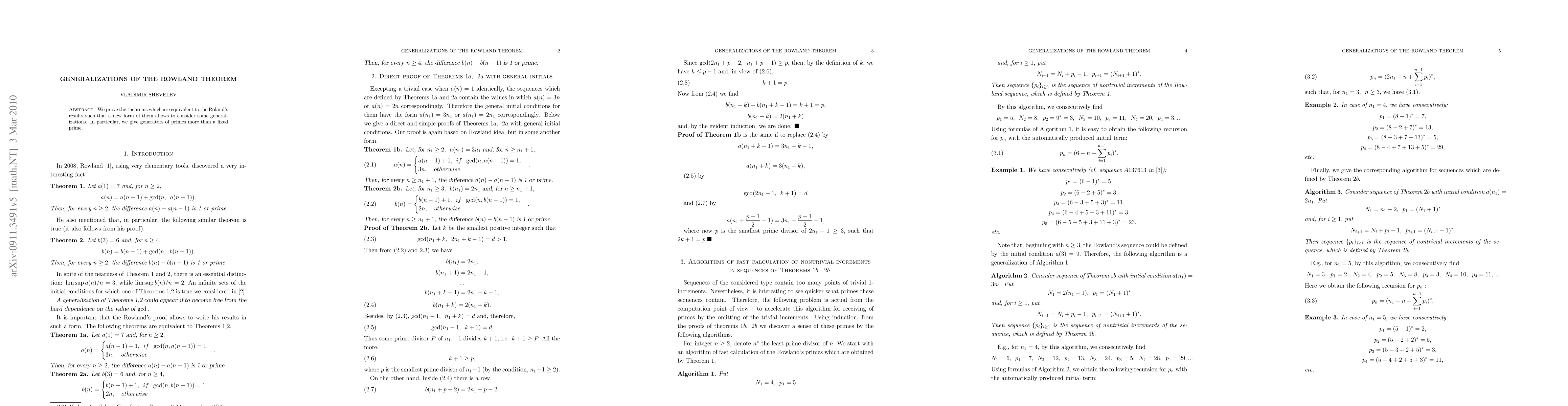 We prove the theorems which are equivalent to the Roland's results such that a new form of them allows to consider some generalizations. In particular, we give generators of primes more than a fixed prime.