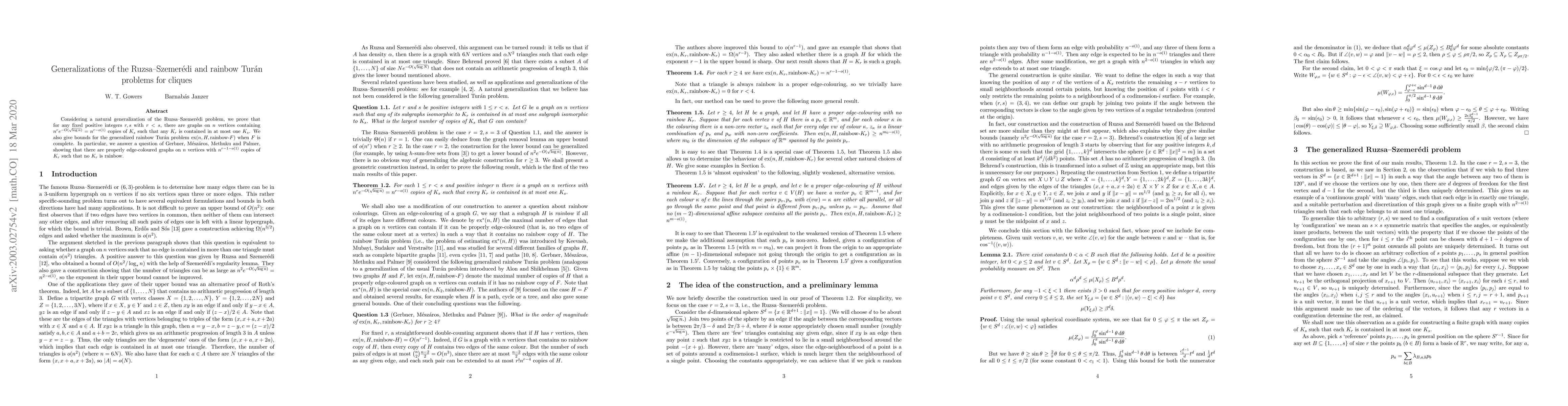 This paper generalizes the Ruzsa-Szemer\'edi problem to show that for any fixed integers $r<s$, there exist graphs with $n^{r-o(1)}$ copies of $K_s$ where any $K_r$ is contained in at most one $K_s$. It also addresses the rainbow Tur\'an problem, proving the existence of edge-colored graphs with $n^{r-1-o(1)}$ copies of $K_r$ where no $K_r$ is rainbow.