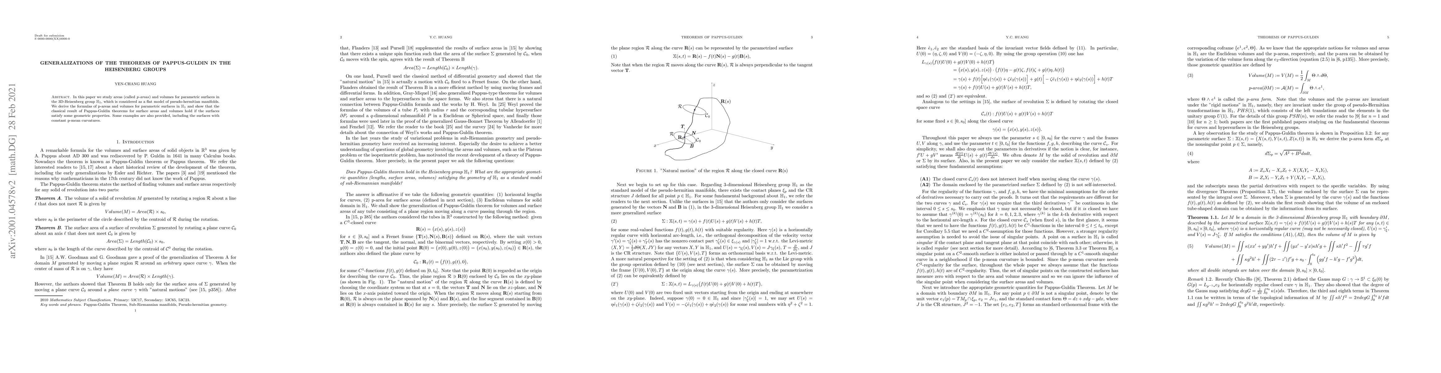 This paper generalizes Pappus-Guldin theorems to the 3D-Heisenberg group $\mathbb{H}_1$, deriving formulas for p-areas and volumes of parametric surfaces and demonstrating that the classical theorems hold under specific geometric conditions, with examples including surfaces with constant p-mean curvatures.