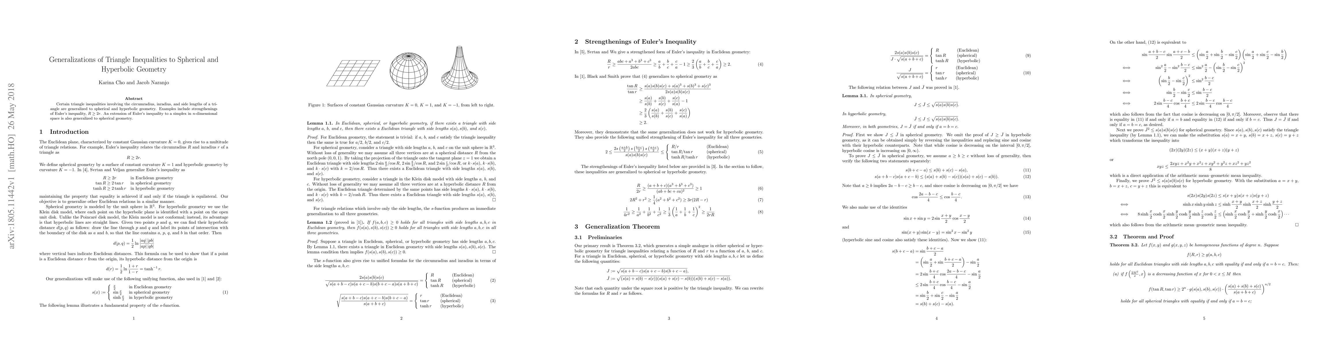 This paper generalizes classical triangle inequalities involving circumradius and inradius to spherical and hyperbolic geometries, including strengthened versions of Euler's inequality and extensions to $n$-dimensional simplices in spherical settings.