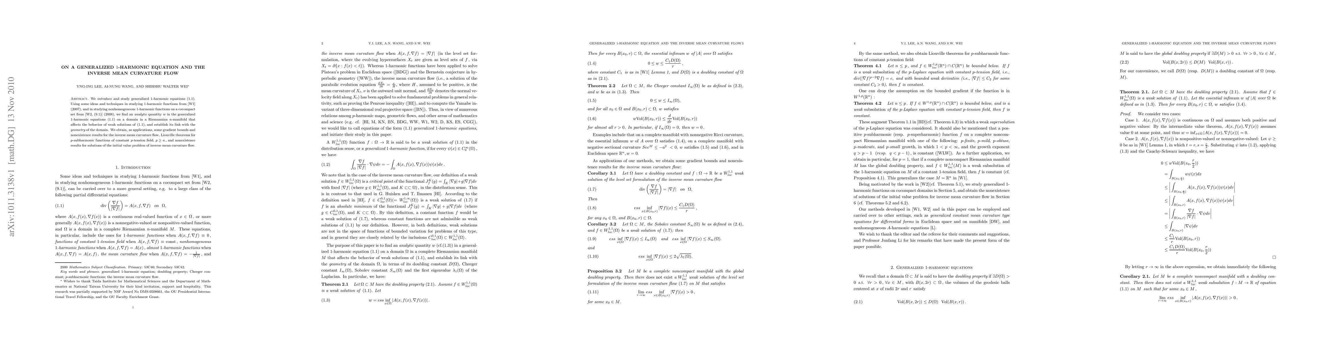 We introduce and study generalized $1$-harmonic equations (1.1). Using some ideas and techniques in studying $1$-harmonic functions from [W1] (2007), and in studying nonhomogeneous $1$-harmonic functions on a cocompact set from [W2, (9.1)] (2008), we find an analytic quantity $w$ in the generalized $1$-harmonic equations (1.1) on a domain in a Riemannian $n$-manifold that affects the behavior of weak solutions of (1.1), and establish its link with the geometry of the domain. We obtain, as applications, some gradient bounds and nonexistence results for the inverse mean curvature flow, Liouville theorems for $p$-subharmonic functions of constant $p$-tension field, $p \ge n$, and nonexistence results for solutions of the initial value problem of inverse mean curvature flow.
