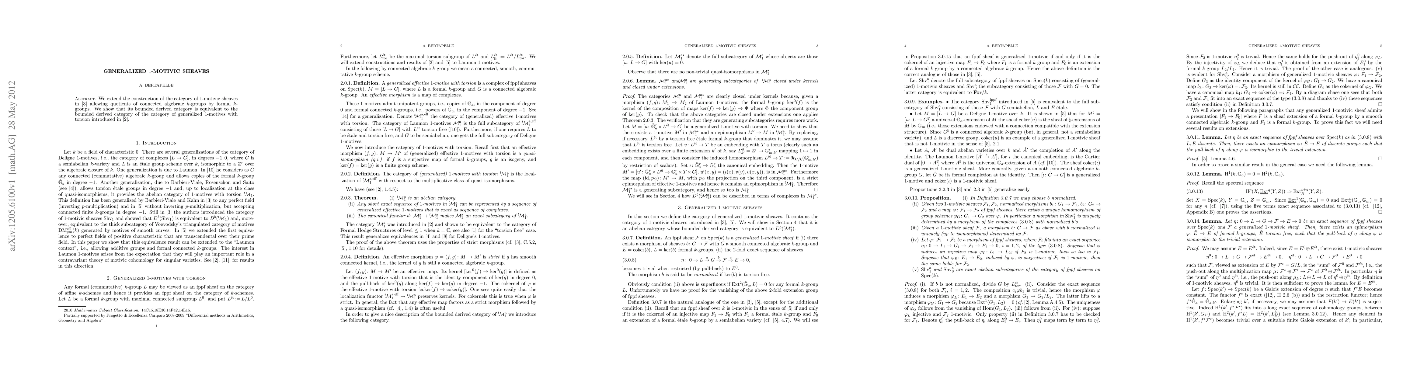 The paper introduces and develops the theory of generalized 1-motivic sheaves, extending previous work on 1-motivic sheaves and establishing equivalences with categories of generalized 1-motives with torsion.