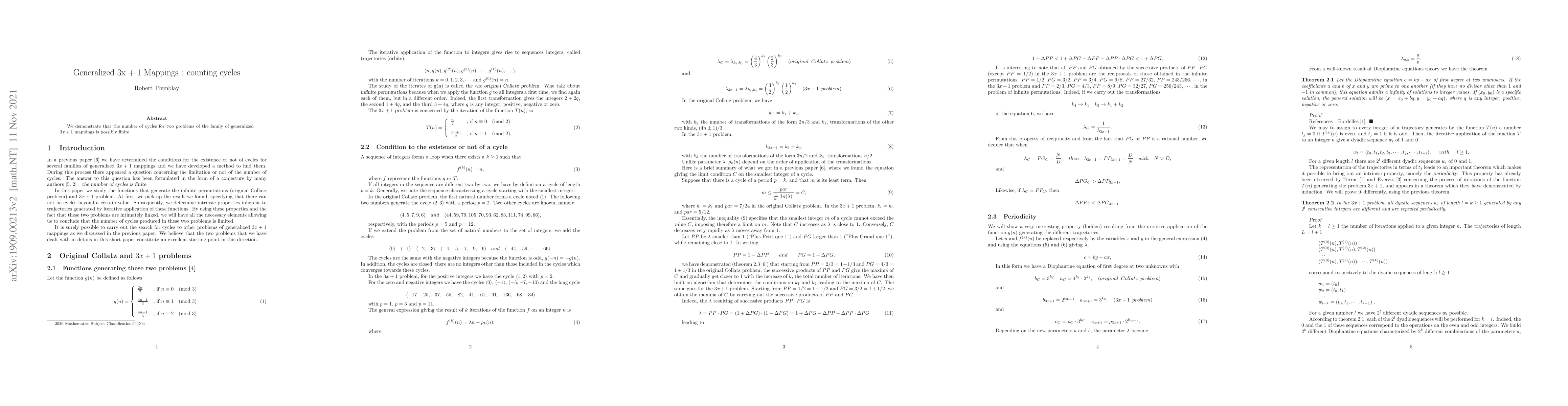 We demonstrate that the number of cycles for two problems of the family of generalized 3x+1 mappings is possible finite.