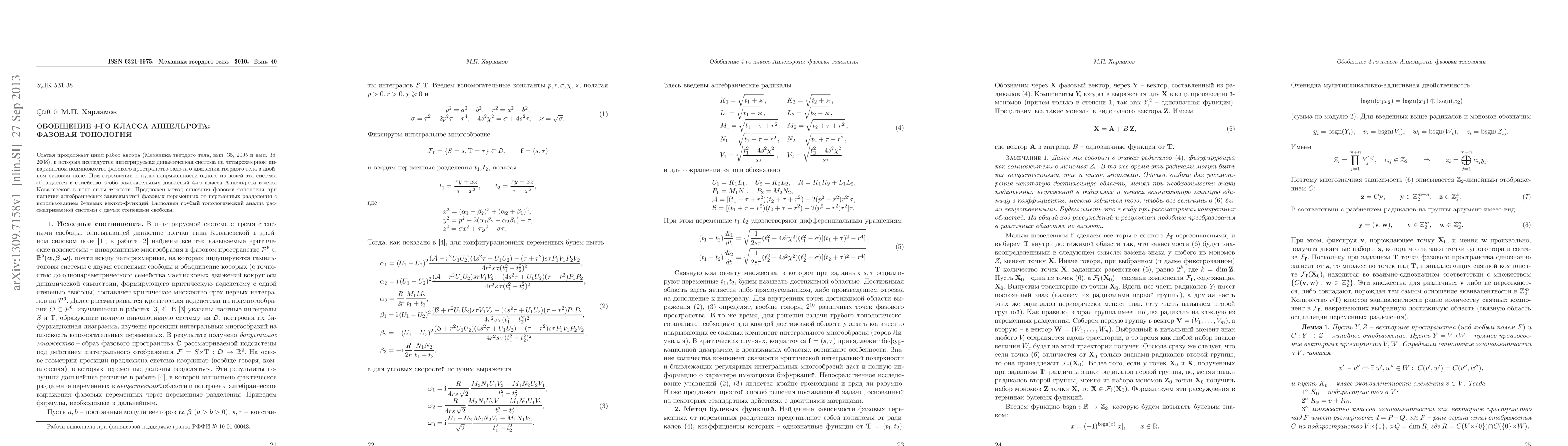 The article continues the author's publication in [Mech. Tverd. Tela, No. 35, 2005 and No. 38, 2008], in which we investigate the integrable dynamical system induced on one four-dimensional submanifold of the phase space of the problem of a rigid body motion in a double force field. When the intensity of one of the fields tends to zero this systems turns into the family of the espesially remarkable motions of the Kowalevski top belonging to the 4th Appelrot class. We introduce a method to describe the phase topology in the case when algebraic dependency is known of the phase variables in terms of separation variables. This method is based on some construction with Boolean vector functions. For the considered system with two degrees of freedom we fulfil the rough topological analysis.