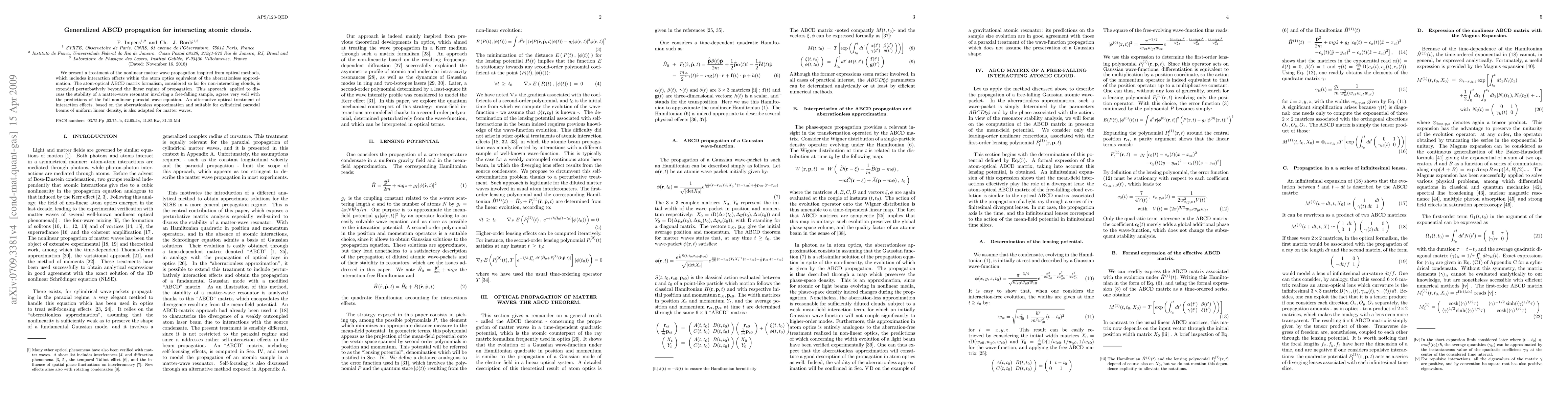 The paper introduces an extended ABCD matrix formalism for interacting atomic clouds, incorporating interaction effects through a perturbative analysis and an alternative optical treatment for matter waves.