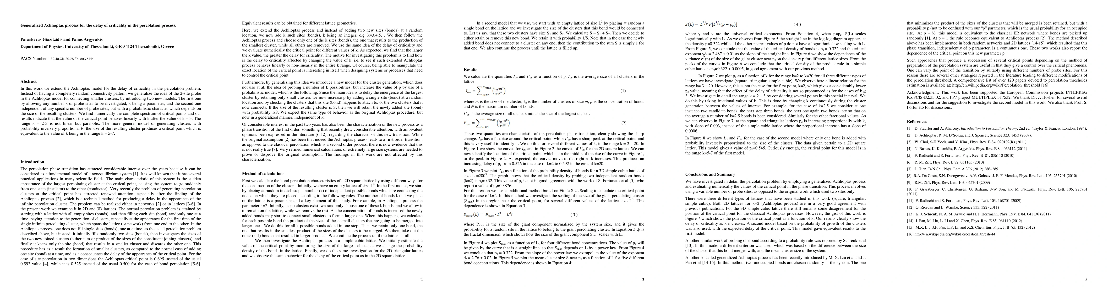 We extend the Achlioptas model for the delay of criticality in the percolation problem. Instead of having a completely random connectivity pattern, we generalize the idea of the two-site probe in the Achlioptas model for connecting smaller clusters, by introducing two models: the first one by allowing any number k of probe sites to be investigated, k being a parameter, and the second one independent of any specific number of probe sites, but with a probabilistic character which depends on the size of the resulting clusters. We find numerically the complete spectrum of critical points and our results indicate that the value of the critical point behaves linearly with k after the value of k = 3. The range k = 2-3 is not linear but parabolic. The more general model of generating clusters with probability inversely proportional to the size of the resulting cluster produces a critical point which is equivalent to the value of k being in the range k = 5-7.