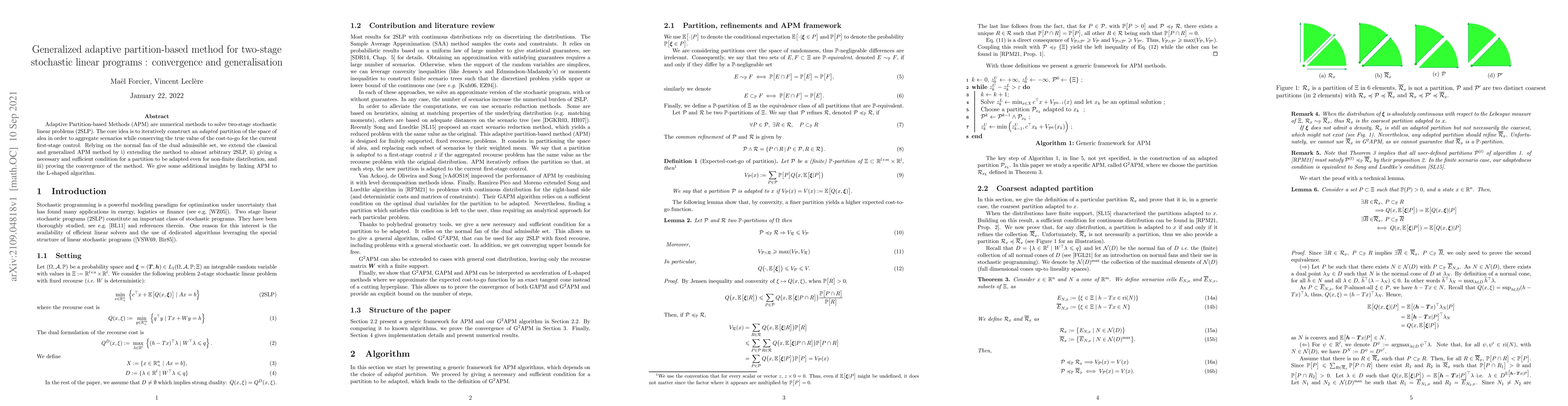 Adaptive Partition-based Methods (APM) are numerical methods to solve two-stage stochastic linear problems (2SLP). The core idea is to iteratively construct an adapted partition of the space of alea in order to aggregate scenarios while conserving the true value of the cost-to-go for the current first-stage control. Relying on the normal fan of the dual admissible set, we extend the classical and generalized APM method by i) extending the method to almost arbitrary 2SLP, ii) giving a necessary and sufficient condition for a partition to be adapted even for non-finite distribution, and iii) proving the convergence of the method. We give some additional insights by linking APM to the L-shaped algorithm.