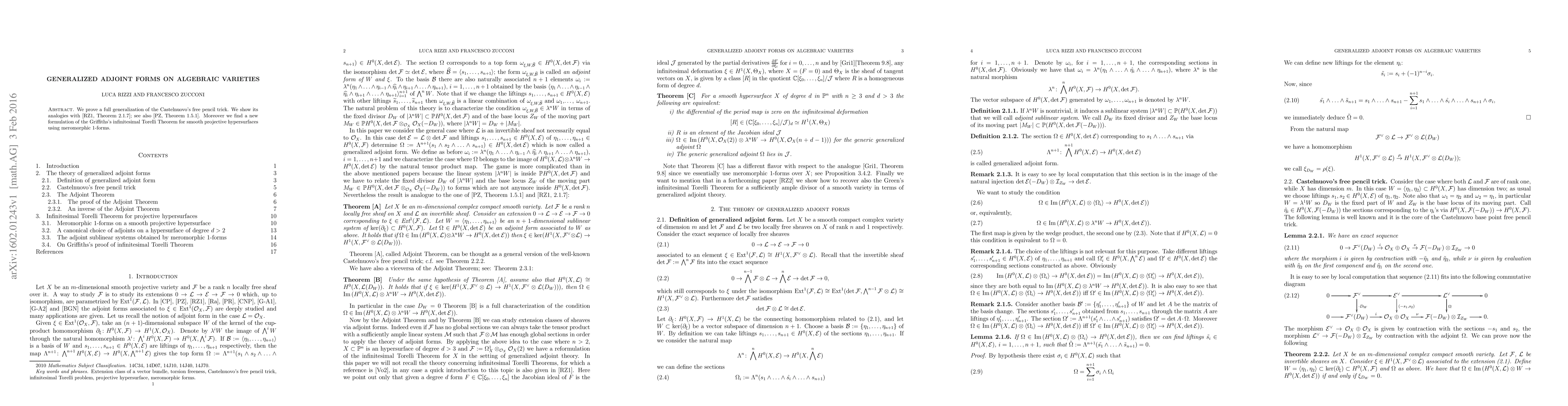 We prove a full generalization of the Castelnuovo's free pencil trick. We show its analogies with the Adjoint Theorem; see L. Rizzi, F. Zucconi, Differential forms and quadrics of the canonical image, arXiv:1409.1826 and also Theorem 1.5.1 in G. P. Pirola, F. Zucconi, Variations of the Albanese morphisms, J. Algebraic Geom. 12 (2003), no. 3, 535-572. Moreover we find a new formulation of the Griffiths's infinitesimal Torelli Theorem for smooth projective hypersurfaces using meromorphic $1$-forms.
