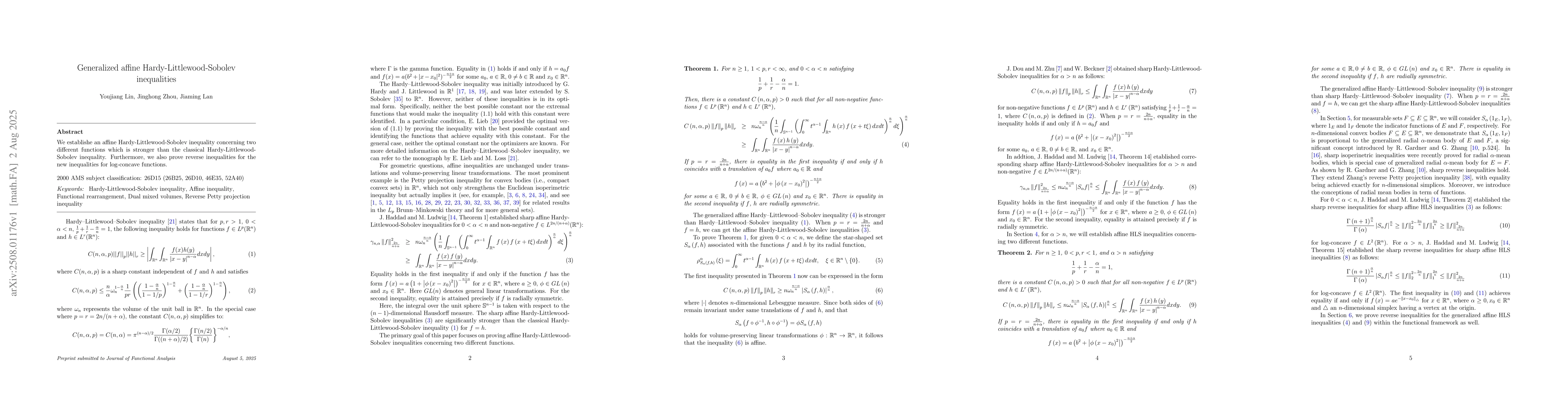 We establishe an affine Hardy-Littlewood-Sobolev inequality concerning two different functions which is stronger than the classical Hardy-Littlewood-Sobolev inequality. Furthermore, we also prove reverse inequalities for the new inequalities for log-concave functions.