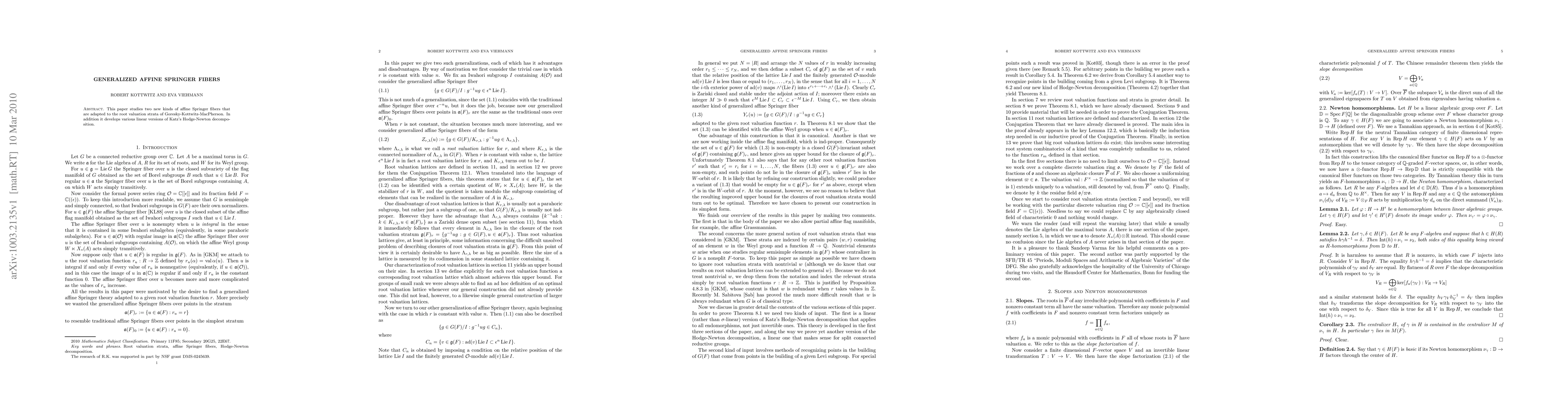 This paper introduces generalized affine Springer fibers tailored to root valuation strata and explores linear versions of Katz's Hodge-Newton decomposition. The study aims to enhance understanding of these structures within the context of algebraic geometry.