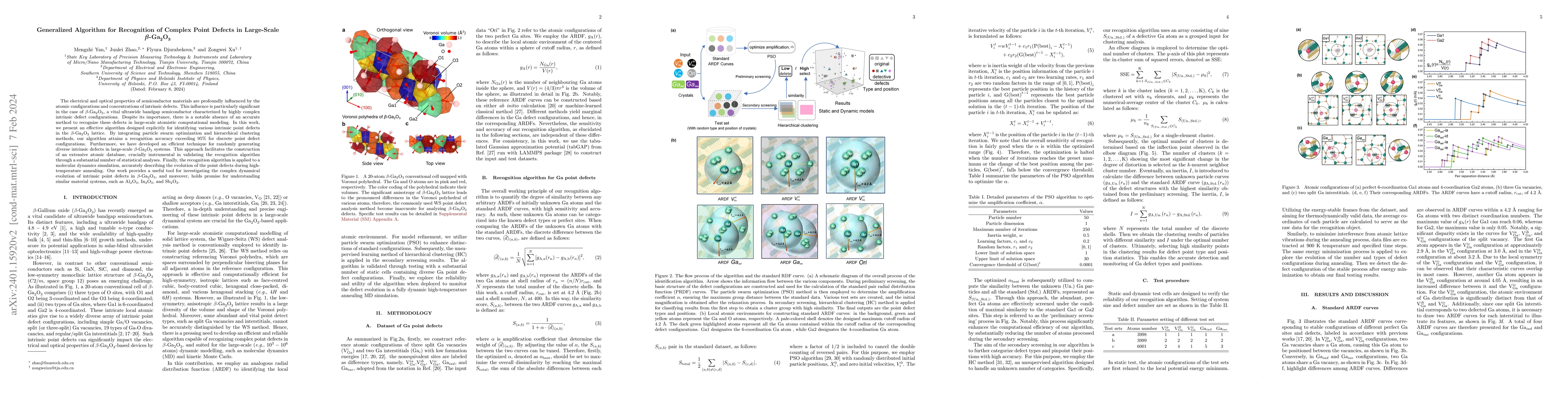This paper introduces a novel algorithm combining particle swarm optimization and hierarchical clustering to accurately recognize complex point defects in large-scale $\beta$-$\rm {Ga_2O_3}$ systems, achieving over 95% recognition accuracy. Additionally, it presents an efficient method for generating diverse intrinsic defects, aiding in the creation of an extensive atomic database for validation and application in molecular dynamics simulations.