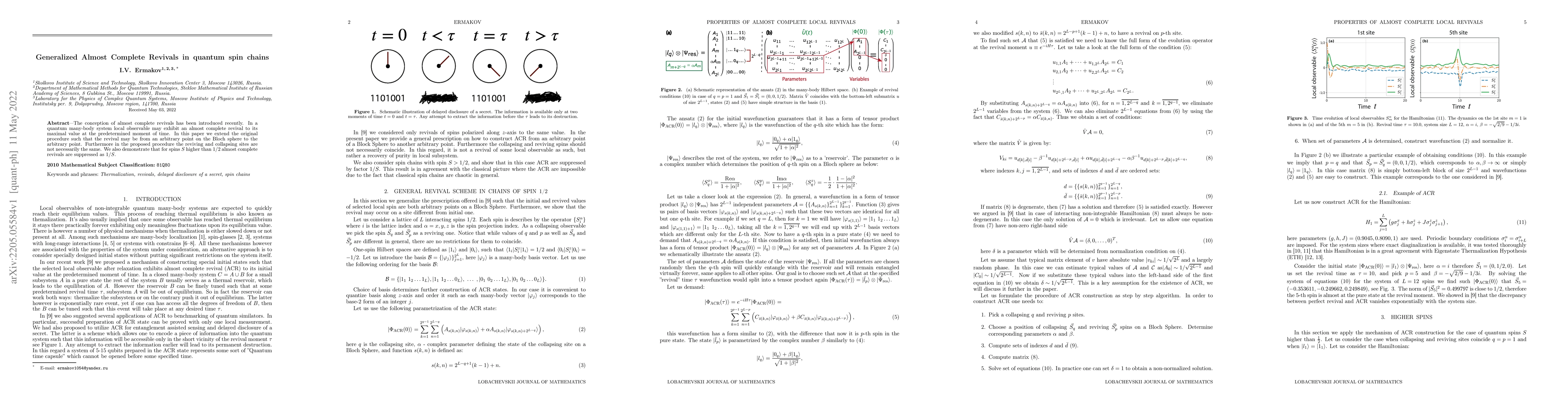 The conception of almost complete revivals has been introduced recently. In a quantum many-body system local observable may exhibit an almost complete revival to its maximal value at the predetermined moment of time. In this paper we extend the original procedure such that the revival may be from an arbitrary point on the Bloch sphere to the arbitrary point. Furthermore in the proposed procedure the reviving and collapsing sites are not necessarily the same. We also demonstrate that for spins $S$ higher than $1/2$ almost complete revivals are suppressed as $1/S$.
