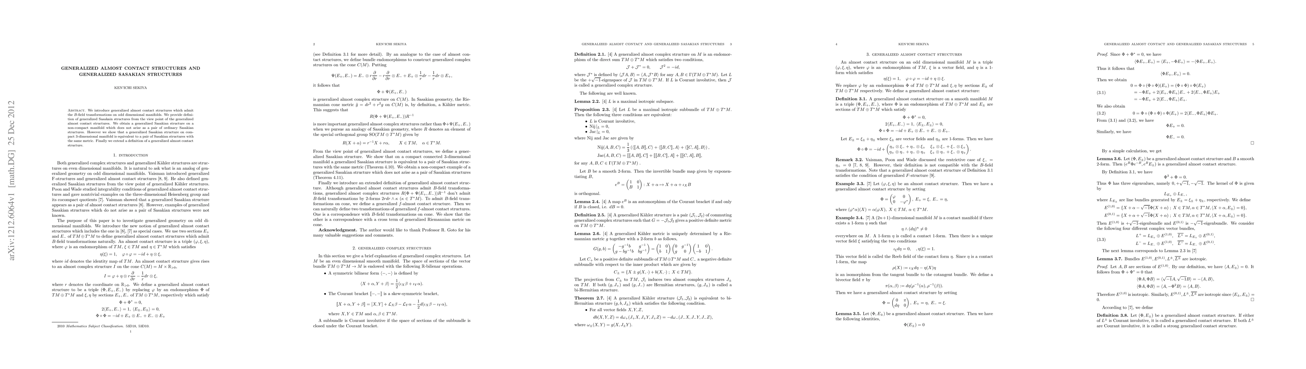 Researchers introduce generalized almost contact structures and Sasakian structures on manifolds, showing equivalence between certain cases and expanding definitions of these concepts.