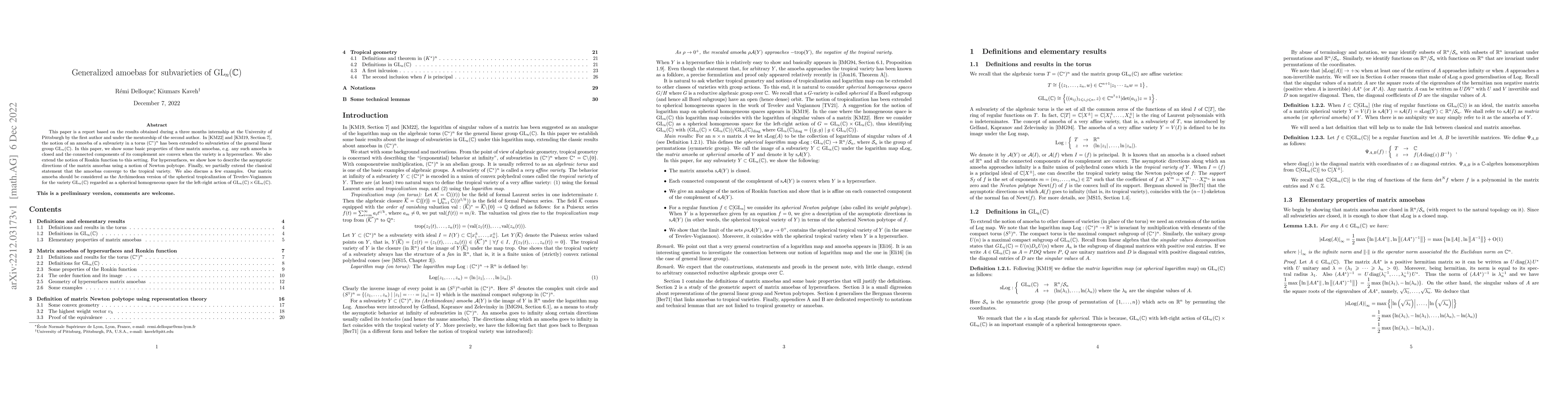This paper extends the concept of amoebas from torus subvarieties to subvarieties of $GL_n(\mathbb{C})$, demonstrating their closed nature and convex complement components for hypersurfaces. It also introduces the Ronkin function and describes asymptotic directions using Newton polytopes, partially relating these matrix amoebas to tropical varieties.
