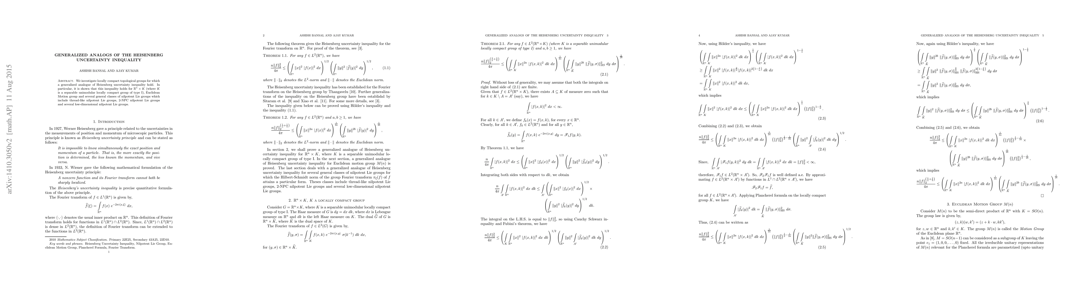 We investigate locally compact topological groups for which a generalized analogue of Heisenberg uncertainty inequality hold. In particular, it is shown that this inequality holds for $\mathbb{R}^n \times K$ (where $K$ is a separable unimodular locally compact group of type I), Euclidean Motion group and several general classes of nilpotent Lie groups which include thread-like nilpotent Lie groups, $2$-NPC nilpotent Lie groups and several low-dimensional nilpotent Lie groups.