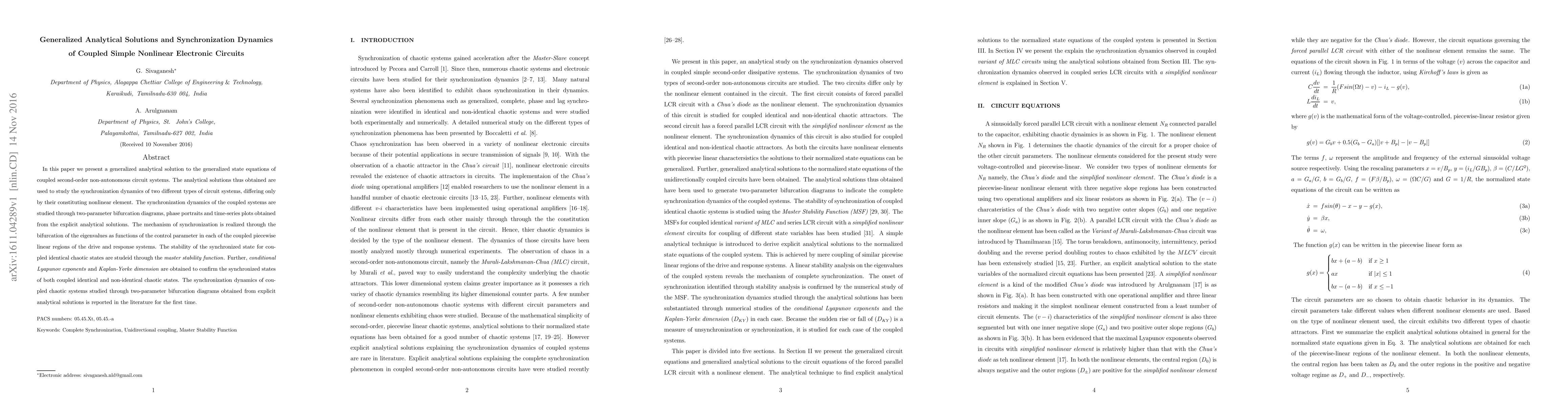 In this paper we present a generalized analytical solution to the generalized state equations of coupled second-order non-autonomous circuit systems. The analytical solutions thus obtained are used to study the synchronization dynamics of two different types of circuit systems, differing only by their constituting nonlinear element. The synchronization dynamics of the coupled systems are studied through two-parameter bifurcation diagrams, phase portraits and time-series plots obtained from the explicit analytical solutions. The mechanism of synchronization is realized through the bifurcation of the eigenvalues as functions of the control parameter in each of the coupled piecewise linear regions of the drive and response systems. The stability of the synchronized state for coupled identical chaotic states are studeid through the {\emph{master stability function}}. Further, {\emph{conditional Lyapunov exponents}} and {\emph{Kaplan-Yorke dimension}} are obtained to confirm the synchronized states of both coupled identical and non-identical chaotic states. The synchronization dynamics of coupled chaotic systems studied through two-parameter bifurcation diagrams obtained from explicit analytical solutions is reported in the literature for the first time.