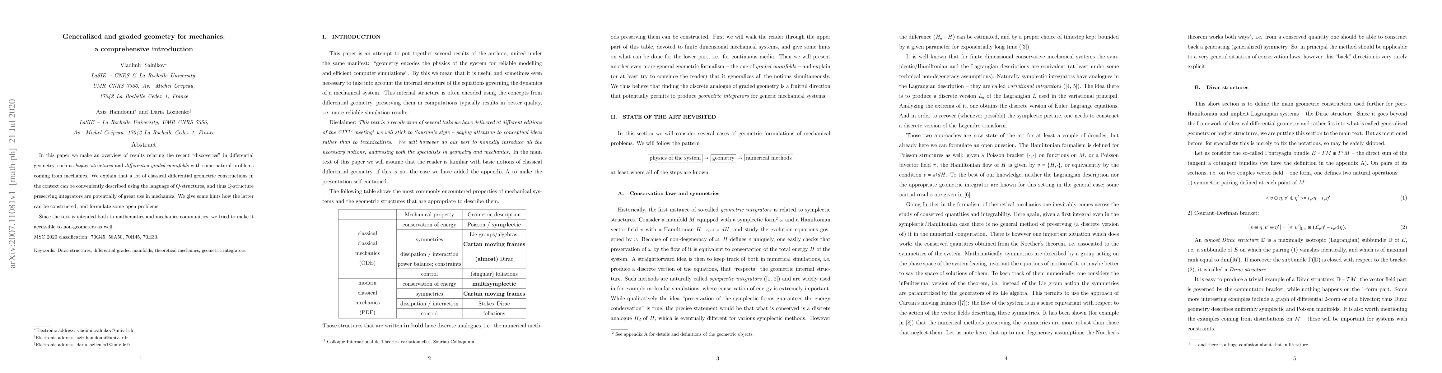In this paper we make an overview of results relating the recent "discoveries" in differential geometry, such as higher structures and differential graded manifolds with some natural problems coming from mechanics. We explain that a lot of classical differential geometric constructions in the context can be conveniently described using the language of Q-structures, and thus Q-structure preserving integrators are potentially of great use in mechanics. We give some hints how the latter can be constructed, and formulate some open problems. Since the text is intended both to mathematics and mechanics communities, we tried to make it accessible to non-geometers as well.