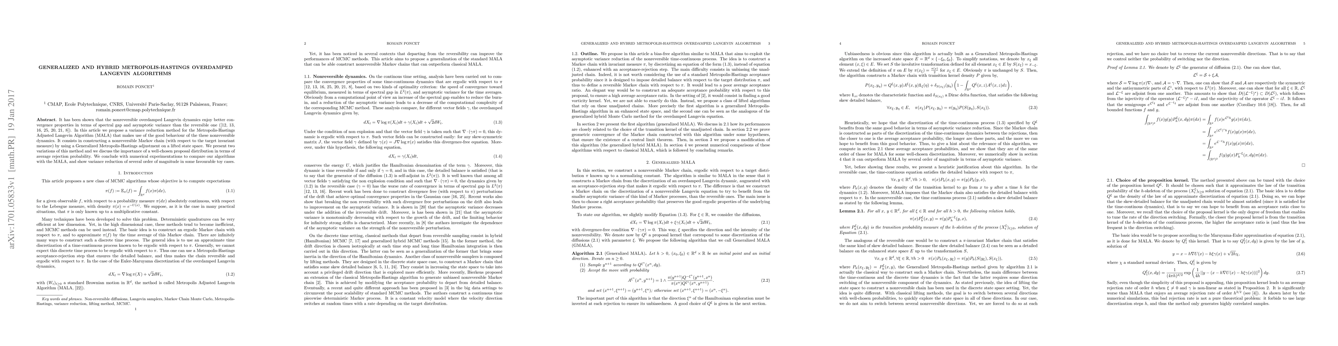 This paper proposes a variance reduction method for the Metropolis-Hastings Adjusted Langevin Algorithm (MALA) by leveraging nonreversible overdamped Langevin dynamics, presenting two variations of the method and demonstrating significant variance reduction through numerical experiments. The importance of a well-chosen proposal distribution is highlighted for optimal performance.