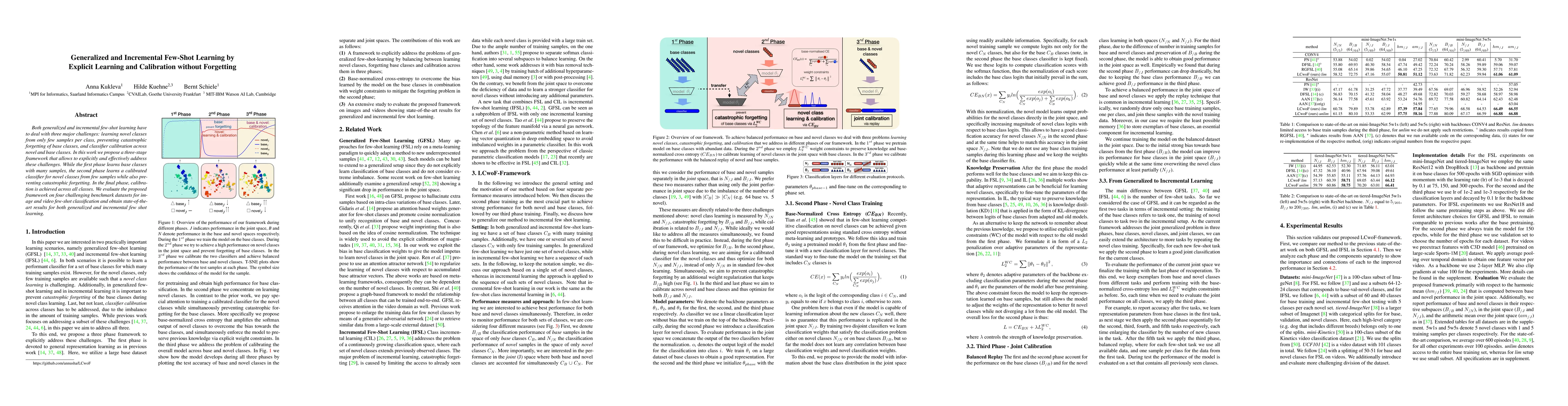 This paper proposes a three-stage framework for generalized and incremental few-shot learning that addresses challenges of learning novel classes with few samples, preventing forgetting of base classes, and classifier calibration. The framework achieves state-of-the-art results on benchmark datasets for image and video classification.