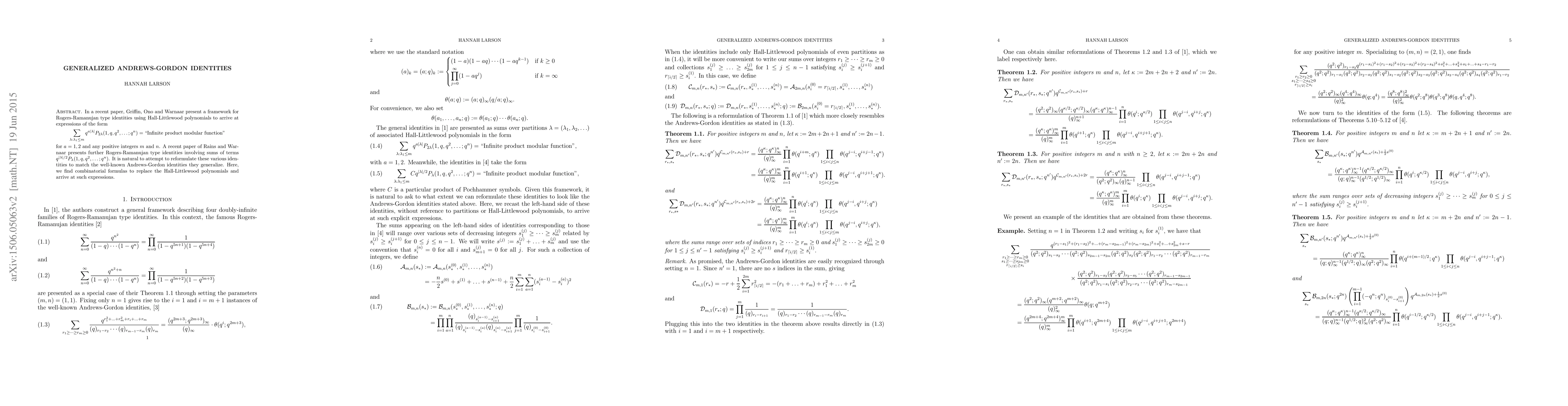 This paper reformulates recent Rogers-Ramanujan type identities using Hall-Littlewood polynomials into generalized Andrews-Gordon identities, providing combinatorial formulas to replace these polynomials.