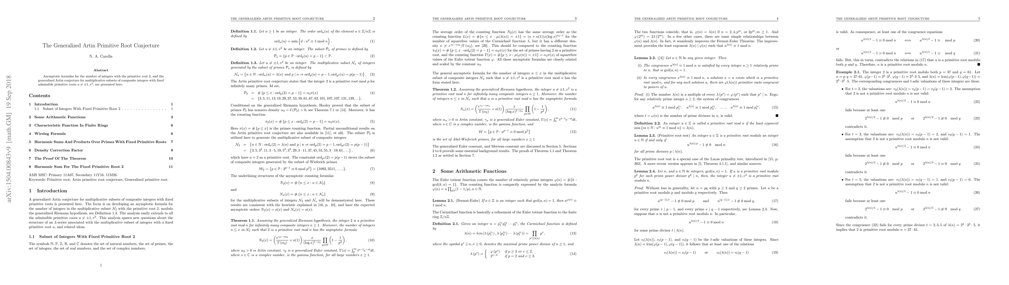 The paper presents an asymptotic formula for the count of integers whose primitive root is 2 and introduces a generalized Artin primitive root conjecture applicable to composite integers.