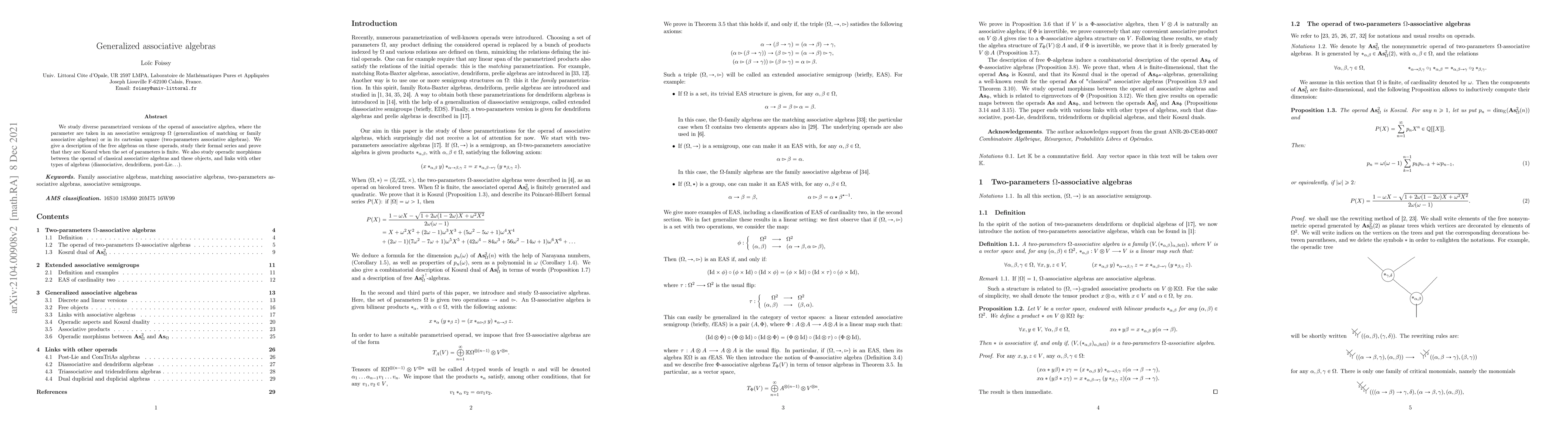 This paper explores various generalized associative algebras defined by parameters in an associative semigroup or its cartesian square, describing free algebras on these operads and proving their Koszul property when parameters are finite. It also investigates operadic morphisms and connections to other algebra types.