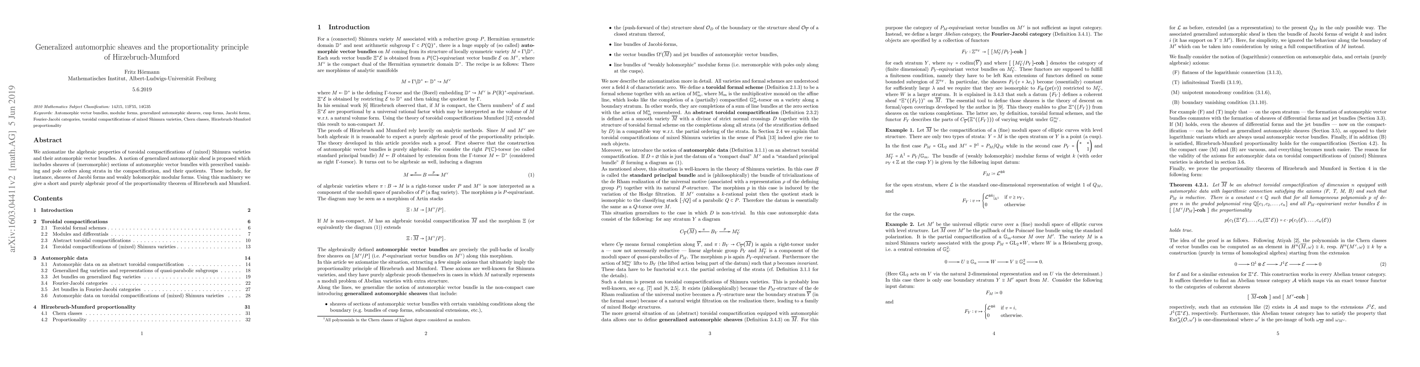 This paper axiomatizes algebraic properties of toroidal compactifications of Shimura varieties and introduces generalized automorphic sheaves. It provides a purely algebraic proof of the proportionality theorem of Hirzebruch and Mumford using this new framework.