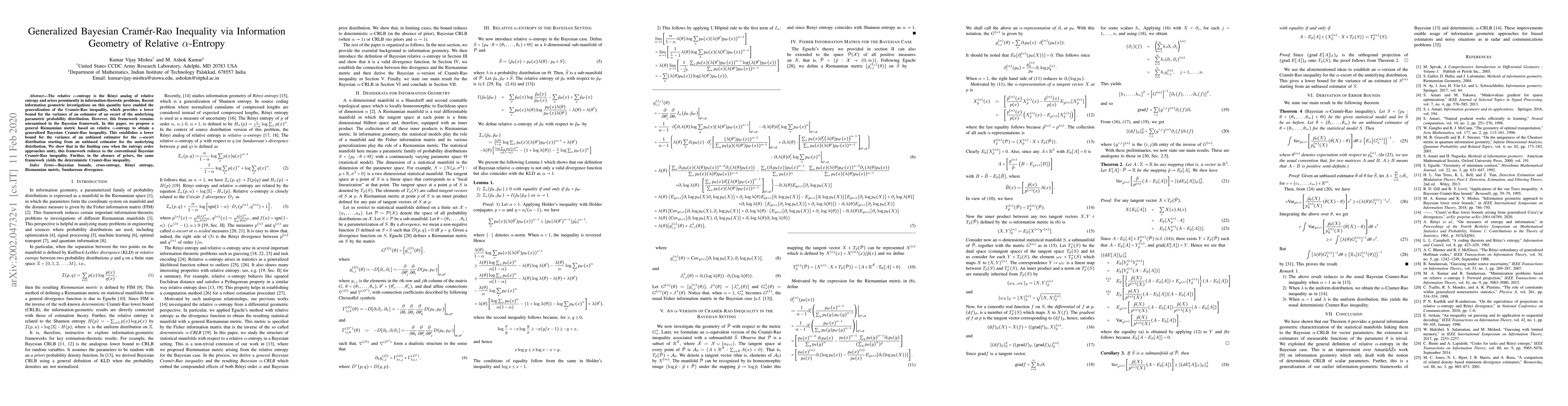 This paper proposes a generalized Bayesian Cramér-Rao inequality using a Riemannian metric based on relative α-entropy, establishing a lower bound for the variance of unbiased estimators for α-escort distributions. It reduces to the conventional Bayesian Cramér-Rao inequality when the entropy order approaches unity and yields the deterministic Cramér-Rao inequality without priors.