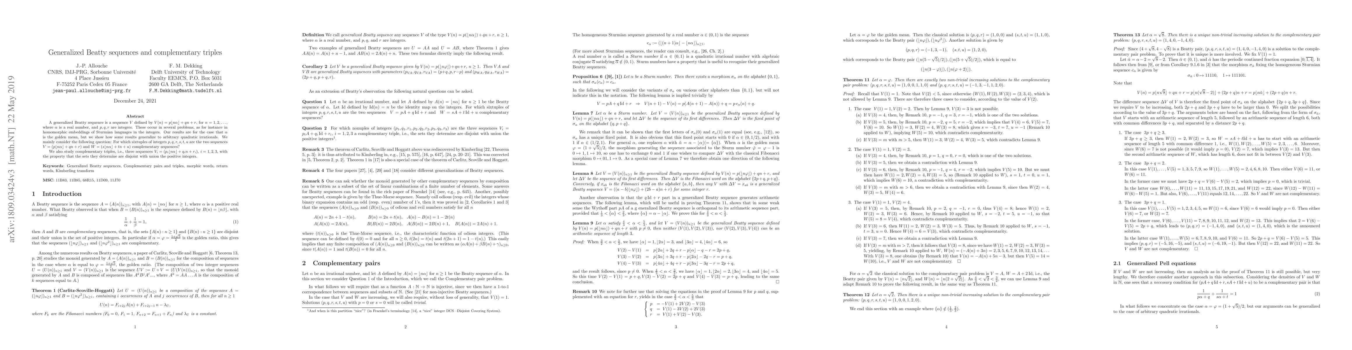 This paper investigates generalized Beatty sequences and complementary triples, focusing on sequences related to the golden mean and exploring conditions for them to be complementary.