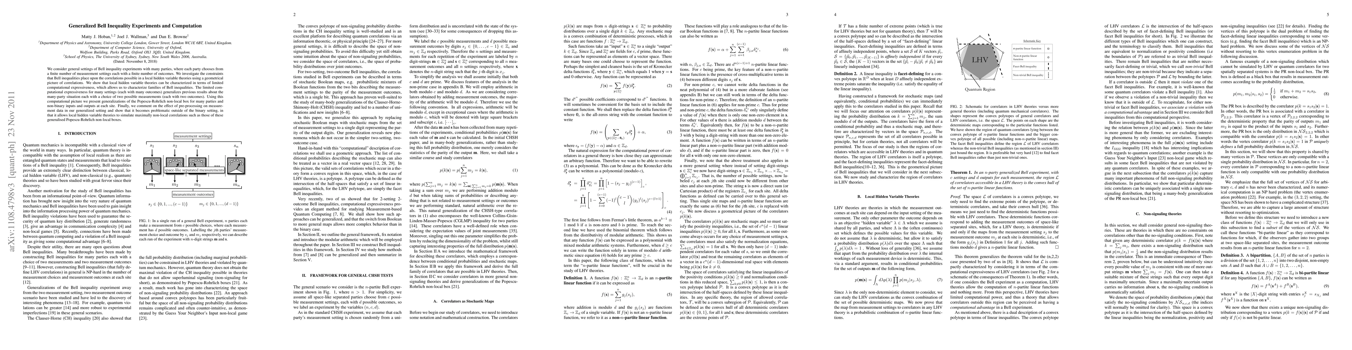 Researchers generalized Bell inequality experiments to include multiple parties with various measurement settings, revealing that local hidden variable theories have limited computational expressiveness. This limits the types of correlations they can exhibit, making certain non-local correlations impossible.