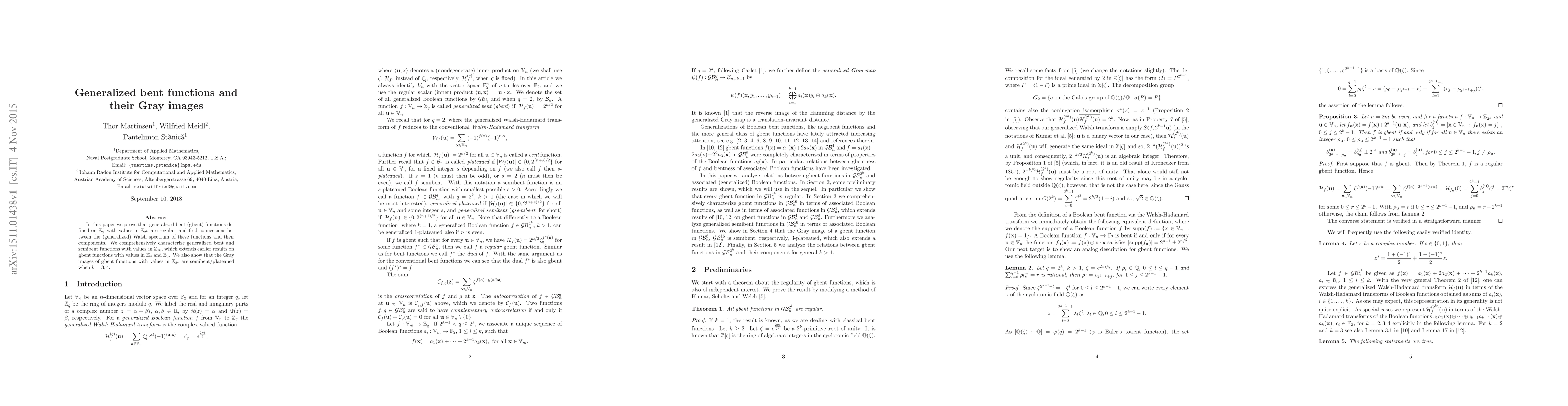 In this paper we prove that generalized bent (gbent) functions defined on $\mathbb{Z}_2^n$ with values in $\mathbb{Z}_{2^k}$ are regular, and find connections between the (generalized) Walsh spectrum of these functions and their components. We comprehensively characterize generalized bent and semibent functions with values in $\mathbb{Z}_{16}$, which extends earlier results on gbent functions with values in $\mathbb{Z}_4$ and $\mathbb{Z}_8$. We also show that the Gray images of gbent functions with values in $\mathbb{Z}_{2^k}$ are semibent/plateaued when $k=3,4$.
